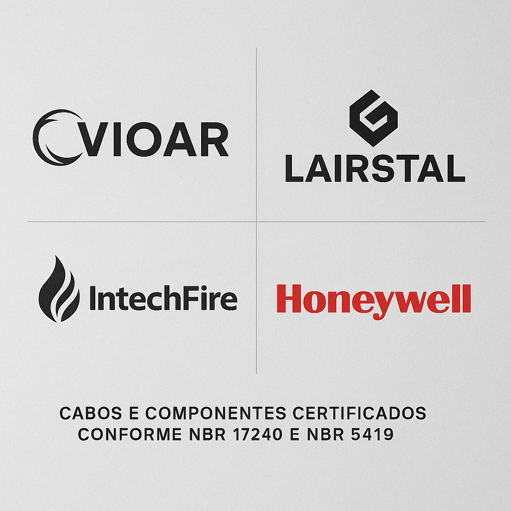 Execução 100% dentro das normas do Corpo de Bombeiros Militar e padrões ABNT (NBR 13714, 17240, 5419).